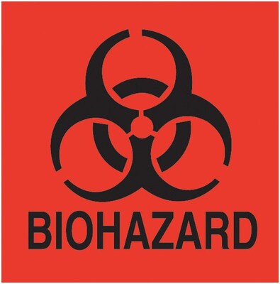 Biohazard Labels & Biohazard Stickers | Emedco Biohazard labels are used to identify containers of biological waste, human blood, and other potentially infectious materials. According to OSHA, the warning labels must have a fluorescent orange background with bold, black lettering and the distinct biohazard symbol.