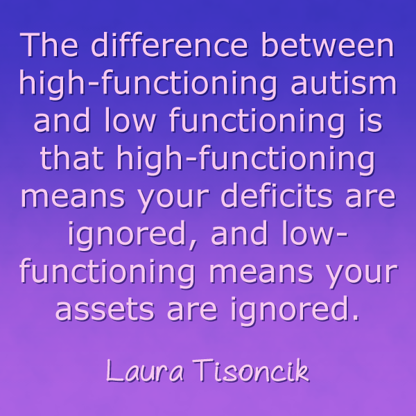 Why Autism Functioning Labels Are Harmful - Ability Today Autistics who are normally called low-functioning may need 24/7 care, may be nonverbal, may not be able to go to the bathroom on their own etc. But that doesn't make them any less intelligent, wonderful or awesome. It just means they need higher support. Imagine hearing someone label you as low-functioning. It would hurt.